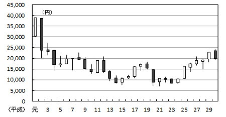 ところが、平成元年の年末(終値3万8915.87円)をピークに、日経平均株価は急落した<図>。さらに、不動産価格も大きく下落するという巨大バブル崩壊の衝撃によって、日本経済は暗くて長いトンネルに入ってしまった。大規模な公的資金の投入などによって銀行の不良債権問題への対処が進み、金融システムにまつわる不安感がなくなるまでに、相当な時間が必要だった。